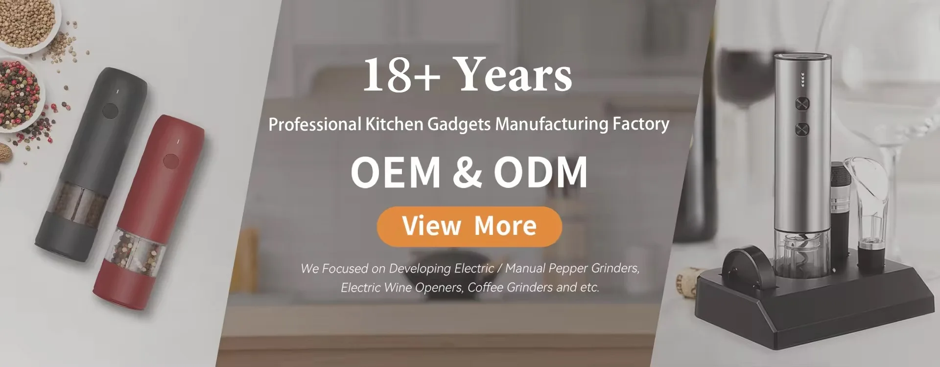 Productos principales:Molinillo de pimienta eléctrico, molinillo de sal eléctrico, molinillo de café eléctrico, abridor de vino eléctrico, Sacacorchos de vino